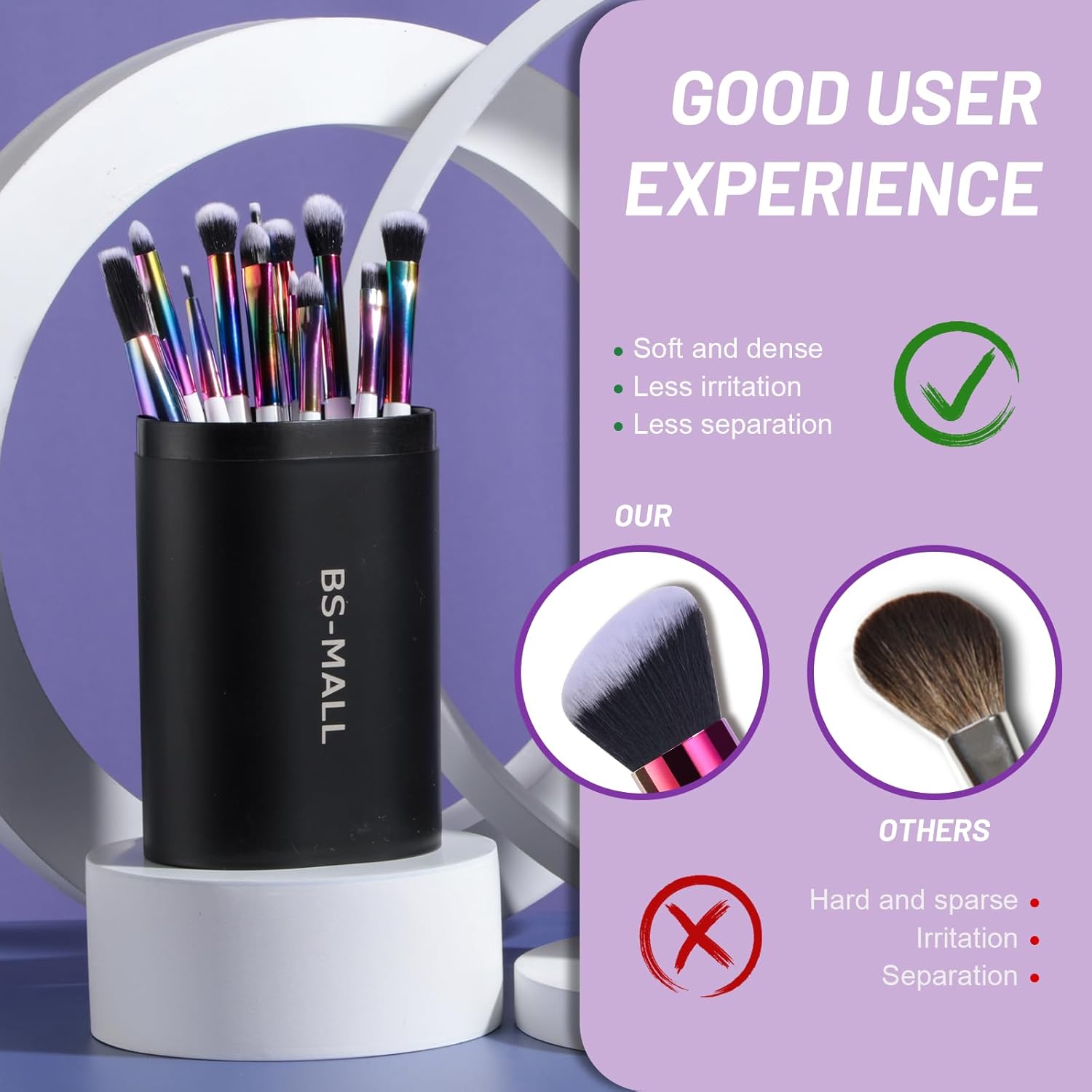 - SYNTHETIC FIBER: The handles of cosmetic brushes are made of high-end alloy and wood material. The bristles are well made of soft and silky nylon, ensured for long time use. All the brushes are fine and dense, suitable for even the most sensitive skin.