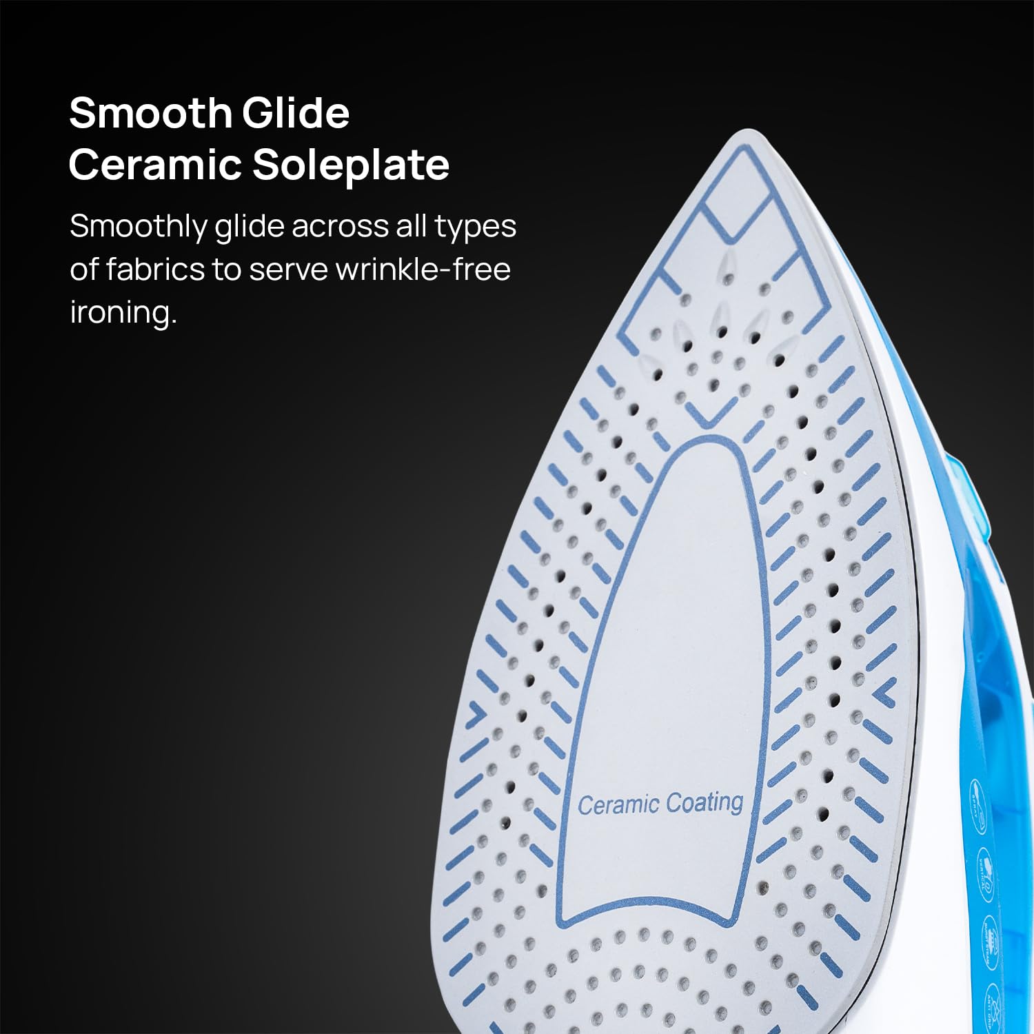 - Ceramic soleplate for easy glide and even distribution of heat