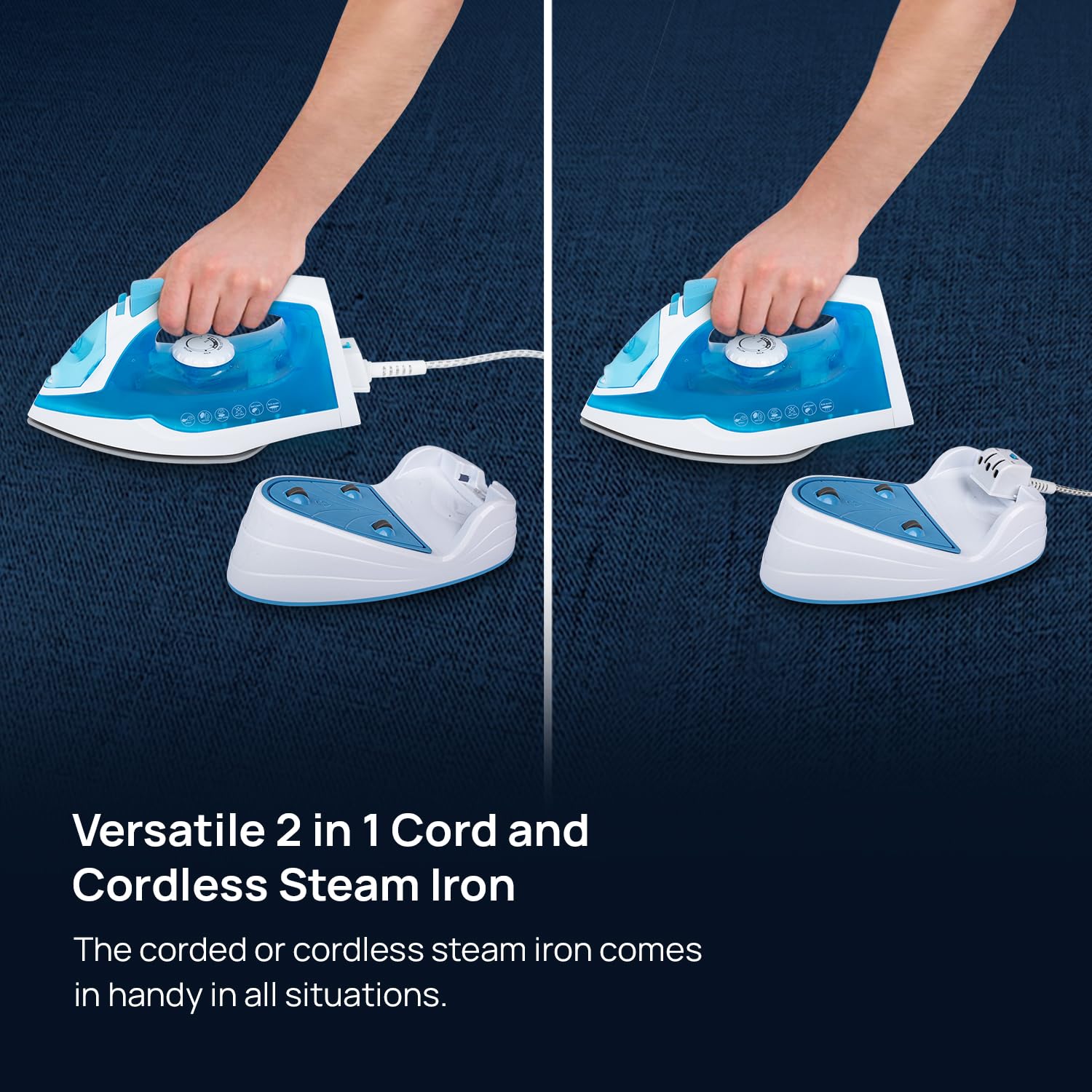 - Dual functionality of cord and cordelss operation for convinience of effortless ironing