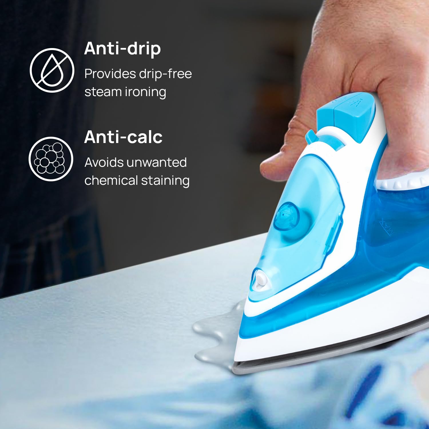 - Antidrip feature to prevent any water dripping from soleplate